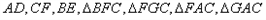 如圖,在△ABC中,AD⊥BC,GC⊥BC,CF⊥AB,BE⊥AC,垂足分別為D、C、F、E,則(    )是△ABC中BC邊上的高,(    )是△ABC中AB邊上的高,(    )是△ABC中AC邊上的高,CF是△ABC的高,也是△(    )、△(    )、△(    )、△(    )的高。