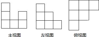 在平整的地面上,有若干個完全相同棱長的小正方體堆成一個幾何體,如圖所示。