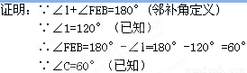 如圖,已知:∠1=120°,∠C=60°,說(shuō)明AB∥CD理由。