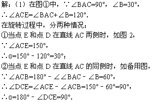 (1)在旋轉(zhuǎn)過程中,當(dāng)∠ACE=150°時(shí),求旋轉(zhuǎn)角α的度數(shù);