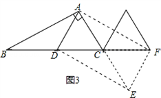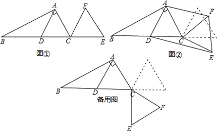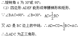 在Rt△ABC中,∠BAC=90°,∠B=30°,線段AD是BC邊上的中線,如圖①,將△ADC沿直線BC平移,使點(diǎn)D與點(diǎn)C重合,得到△FCE;如圖②,再將△FCE繞點(diǎn)C順時(shí)針旋轉(zhuǎn),設(shè)旋轉(zhuǎn)角為α(0°<α≤90°),連接AF、DE.