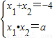 解答:解:∵x1、x2為方程x2+4x+a=0的兩個(gè)根,