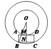 如圖,以點(diǎn)O為圓心的兩個(gè)同心圓中,矩形ABCD的邊BC為大圓的弦,邊AD與小圓相切于點(diǎn)M,OM的延長(zhǎng)線與BC相交于點(diǎn)N。