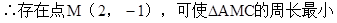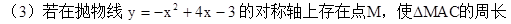 3.(3)設拋物線交y軸于點C,問該拋物線對稱軸上是否存在點M,使得△MAC的周長最小。若存在,求出點M的坐標;若不存在,請說明理由。