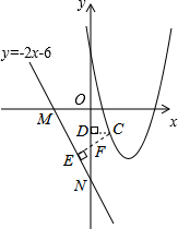 過點(diǎn)C作直線y=-2x-6的垂線,垂足為E,交y軸于點(diǎn)F,