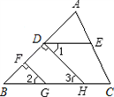 已知:如圖,GF⊥AB,HD⊥AB,∠ADE=∠B.