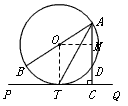 | 如圖,AB為⊙O的直徑,D、T是圓上的兩點,且AT平分∠BAD,過點T作AD延長線的垂線PQ,垂足為C. |