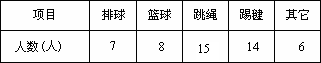 | 項目 | 排球 | 籃球 | 跳繩 | 踢毽 | 其它 |