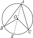 分析:連接AO,并延長,交圓于點(diǎn)E,由等腰三角形的性質(zhì)即可求出∠BAE及∠CAE的度數(shù),故可得出∠BAC的度數(shù),根據(jù)圓周角定理即可求出∠BOC的度數(shù).