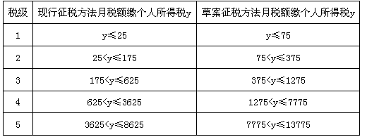 | 稅級 | 現(xiàn)行征稅方法 | 草案征稅方法 | ||||