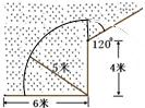 如圖,一根5m長的繩子,一端拴在圍墻墻角的柱子上,另一端拴著一只小羊A(羊只能在草地上活動(dòng)),那么小羊A在草地上的最大活動(dòng)區(qū)域面積是( )