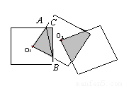 如圖,三個(gè)邊長(zhǎng)均為2的正方形重疊在一起,O1、O2是其中兩個(gè)正方形的中心,則陰影部分的面積是 ![]()