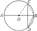 【答案】分析:連接OC,BC,根據(jù)弦CD垂直平分OB,得OC=BC,又OC=OB,所以△OCB是等邊三角形,得∠COB=60°,根據(jù)圓周角定理得∠D=30°.