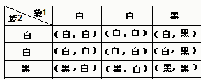 兩個(gè)布袋中分別裝有除顏色外,其他都相同的2個(gè)白球,1個(gè)黑球,同時(shí)從這兩個(gè)布袋中摸出一個(gè)球,請用列表法表示出可能出現(xiàn)的情況,并求出摸出的球顏色相同的概率。