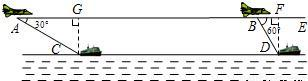 法航客機失事引起全球高度關(guān)注,為調(diào)查失事原因,巴西軍方派出偵察機和搜救船在失事海域同時沿同一方向配合搜尋飛機殘。ㄈ鐖D10).在距海面900米的高空A處,偵察機測得搜救船在俯角為30°的海面C處,當(dāng)偵察機以