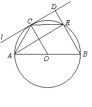 如圖,⊙O的直徑AB=4,C為圓周上一點(diǎn),AC=2,過(guò)點(diǎn)C作⊙O的切線l,過(guò)點(diǎn)B作l的垂線BD,垂足為D,BD與⊙O交于點(diǎn) E.