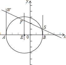 過AB中點E(-1,0),作垂線與直線的交點為F(-1,2.5),