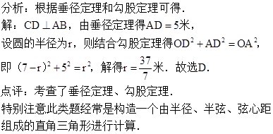 高速公路的隧道和橋梁最多.圖是一個(gè)隧道的橫截面,若它的形狀是以O為圓心的圓的一部分,路面AB=10米,凈高CD=7米,則此圓的半徑OA= 米.