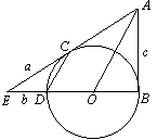 如圖,BD是⊙O的直徑,AB與⊙O相切于點(diǎn)B,過(guò)點(diǎn)D作OA的平行線交⊙O于點(diǎn)C,AC與BD的延長(zhǎng)線相交于點(diǎn)E。