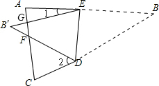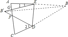 分析:首先根據(jù)折疊可知∠BED=∠B′ED,∠BDE=∠B′DE,再根據(jù)平角定義可知∠1+2∠B′ED=180°,∠2+2∠B′DE=180°,把兩式相加可得到∠1+∠2+2(∠B′ED+∠B′DE)=360°,再由三角形內(nèi)角和可知∠B′ED+∠B′DE=180°-∠B′,進(jìn)行等量代換即可得到∠B′的度數(shù).