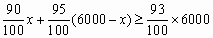 某漁場計劃購買甲、乙兩種魚苗共6000尾,甲種魚苗每尾0.5元,乙種魚苗每尾0.8元.相關資料表明:甲、乙兩種魚苗的成活率分別為90%和95%.
