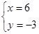 【解析】(1)×3-(2),y=-3,代入(1),x=6