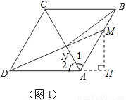 【答案】分析:(1)①三角形ABN和ADN中,不難得出AB=AD,∠DAC=∠CAB,AN是公共邊,根據(jù)SAS即可判定兩三角形全等.