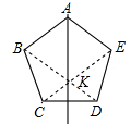 如圖,已知正五邊形ABCDE ,請用無刻度的直尺,準確地畫出它的一條對稱軸(保留作圖痕跡)(    )。