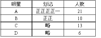 | 某校七年級一班50名同學(xué)最喜歡的NBA籃球明星的調(diào)查結(jié)果如下:其中:A代表姚明,B代表科比,C代表詹姆斯,D代表麥迪. (1)填表: |