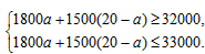 2.為了改善經(jīng)營,電器城決定再經(jīng)銷B型號(hào)彩電,已知A型號(hào)彩電每臺(tái)進(jìn)貨價(jià)為1 800元,B型號(hào)彩電每臺(tái)進(jìn)貨價(jià)為1500元,電器城預(yù)計(jì)用不大于3.3萬元且不少于3.2萬元的資金購進(jìn)這兩種彩電共20臺(tái),有哪幾種進(jìn)貨方案?
