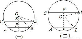 (2)AB,CD在圓心的異側(cè)如圖(二),連接OD,OB,過O作AB的垂線交CD、AB于E,F(xiàn),
