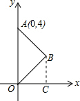 分析:如圖,過點(diǎn)B作BC⊥x軸于點(diǎn)C,通過解直角△AOB求出OB的長度;然后再通過解等腰直角△OBC來求BC、OC的長度,即點(diǎn)B的坐標(biāo).