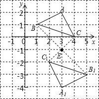 如圖,在平面直角坐標(biāo)系中,若△ABC繞點E旋轉(zhuǎn)180°后與△A1B1C1完全重合,則點E的坐標(biāo)是( )