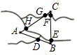 解答:解:如圖:A、B、C三個(gè)村莊兩兩相連,與三條河共有5個(gè)交點(diǎn),所以要架5座橋,分別在D,E,F(xiàn),G,H處.