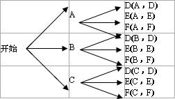 小吳在放假期間去上海參觀世博會,小吳根據(jù)游客流量,決定第一天從中國館 (A)、日本館 (B)、西班牙館(C)中隨機(jī)選一個(gè)館參觀,第二天從 法國館 (D)、沙特館 (E)、芬蘭館 (F) 中隨機(jī)選一個(gè)館參觀。請你用列表法或畫樹形圖 (樹形圖)法,求小吳恰好第一天參觀 中國館(A)且第二天參觀芬蘭館(F)的概率。(各國家館可用對應(yīng)的字母表示)