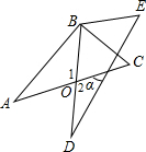 分析:根據(jù)旋轉(zhuǎn)的性質(zhì)得到∠DBA=40°,∠D=∠A=30°,利用三角形內(nèi)角和定理得到∠1+∠A+∠ABD=∠2+∠D+∠α=180°,而∠1=∠2,即可確定∠α=∠ABD.