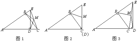已知:在△ABC中,∠ABC=90°,點(diǎn)E在直線AB上,ED與直線AC垂直,垂足為D,且點(diǎn)M為EC中點(diǎn),連接BM、DM,