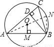 解答:解:連接AO并延長,交圓O于點N,連接BN.