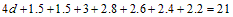 有一種用來畫圓的工具板(如圖所示),工具板長21cm,上面依次排列著大小不等的五個(gè)圓(孔),其中最大圓的直徑為3cm,其余圓的直徑從左到右依次遞減0.2cm. 最大圓的左側(cè)距工具板左側(cè)邊緣1.5cm,最小圓的右側(cè)距工具板右側(cè)邊緣1.5cm,相鄰兩圓的間距d均相等.