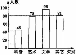 (3)隨機(jī)調(diào)查一名學(xué)生,估計(jì)恰好是喜歡文學(xué)類圖書的概率是 .