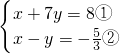 ①-②得,8y=,