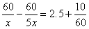 解:設(shè)甲速為xkm/h,則乙速為5xkm/h