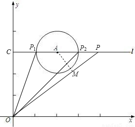 如圖,已知O為坐標(biāo)原點(diǎn),點(diǎn)A的坐標(biāo)為(2,3),⊙A的半徑為1,過(guò)A作直線l平行于x軸,點(diǎn)P在l上運(yùn)動(dòng).