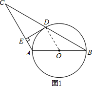 分析:(1)連接OD,只要證明OD⊥DE即可.此題可運(yùn)用三角形的中位線定理證OD∥AC,因?yàn)镈E⊥AC,所以O(shè)D⊥DE.