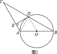 如圖,已知AB是圓O的直徑,∠DAB的平分線AC交圓O與點(diǎn)C,作CD⊥AD,垂足為點(diǎn)D,直線CD與AB的延長(zhǎng)線交于點(diǎn)E.