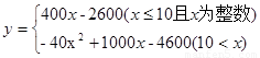 當(dāng)x>10時(shí) y=[400-40(x-10)]*(x-5)-600