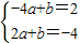 把A(-4,2)、B(2,-4)代入y=ax+b,得,解得:,∴y=-x-2.