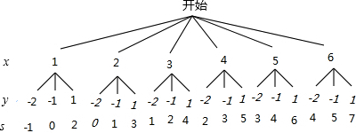 全相同,正面分布寫有數(shù)字﹣2,﹣1,1的卡片,將其混合后,正面朝下放置在桌面上,并從中隨機地抽取一張,把卡片正面上的數(shù)字記為y;然后計算出S=x+y的值.