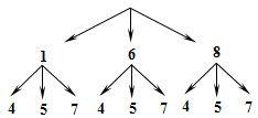 | 1 | (1,4) | (1,5) | (1,7) |
