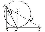 (2012•玉林)如圖,已知點O為Rt△ABC斜邊AC上一點,以點O為圓心,OA長為半徑的⊙O與BC相切于點E,與AC相交于點D,連接AE.